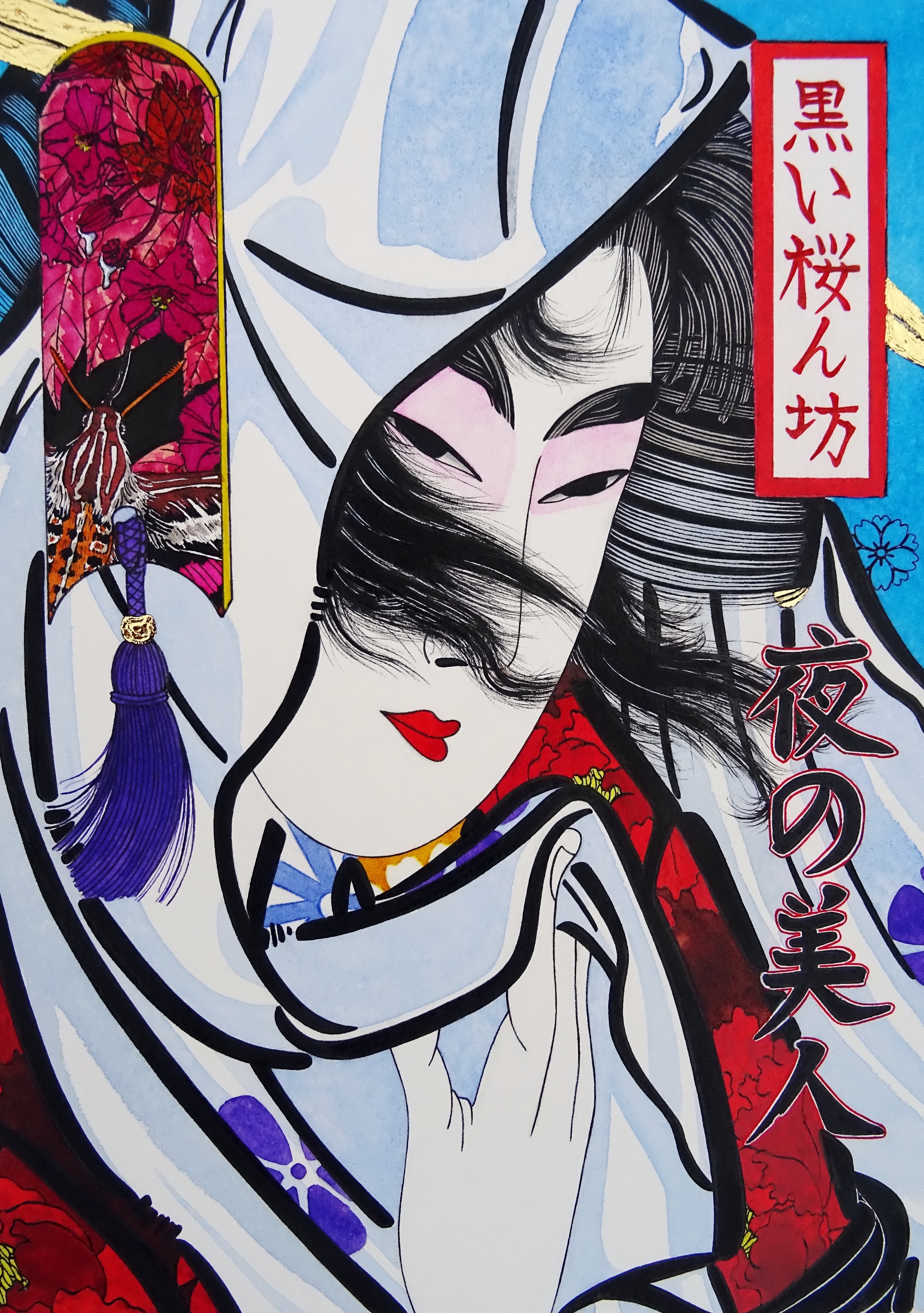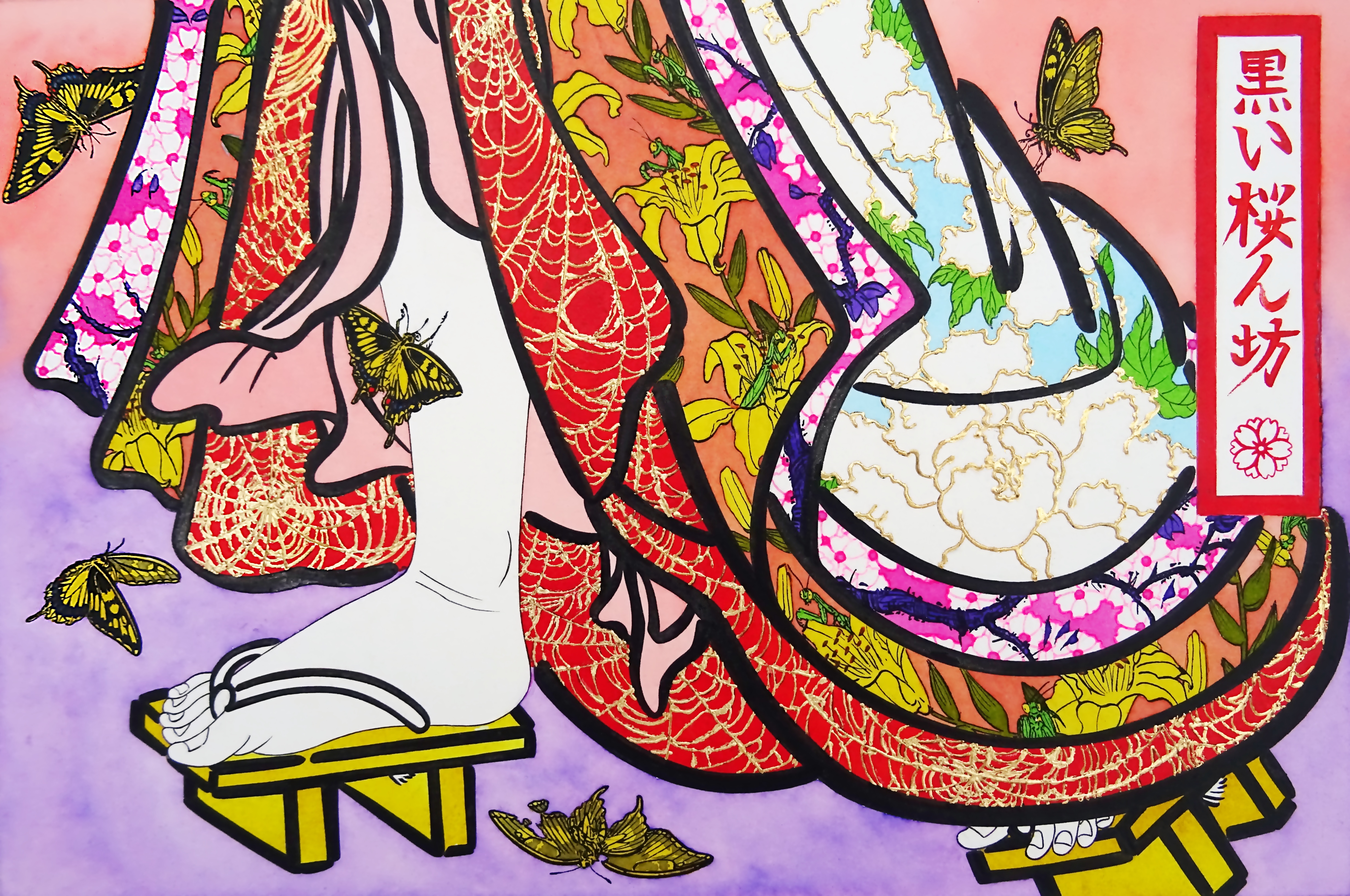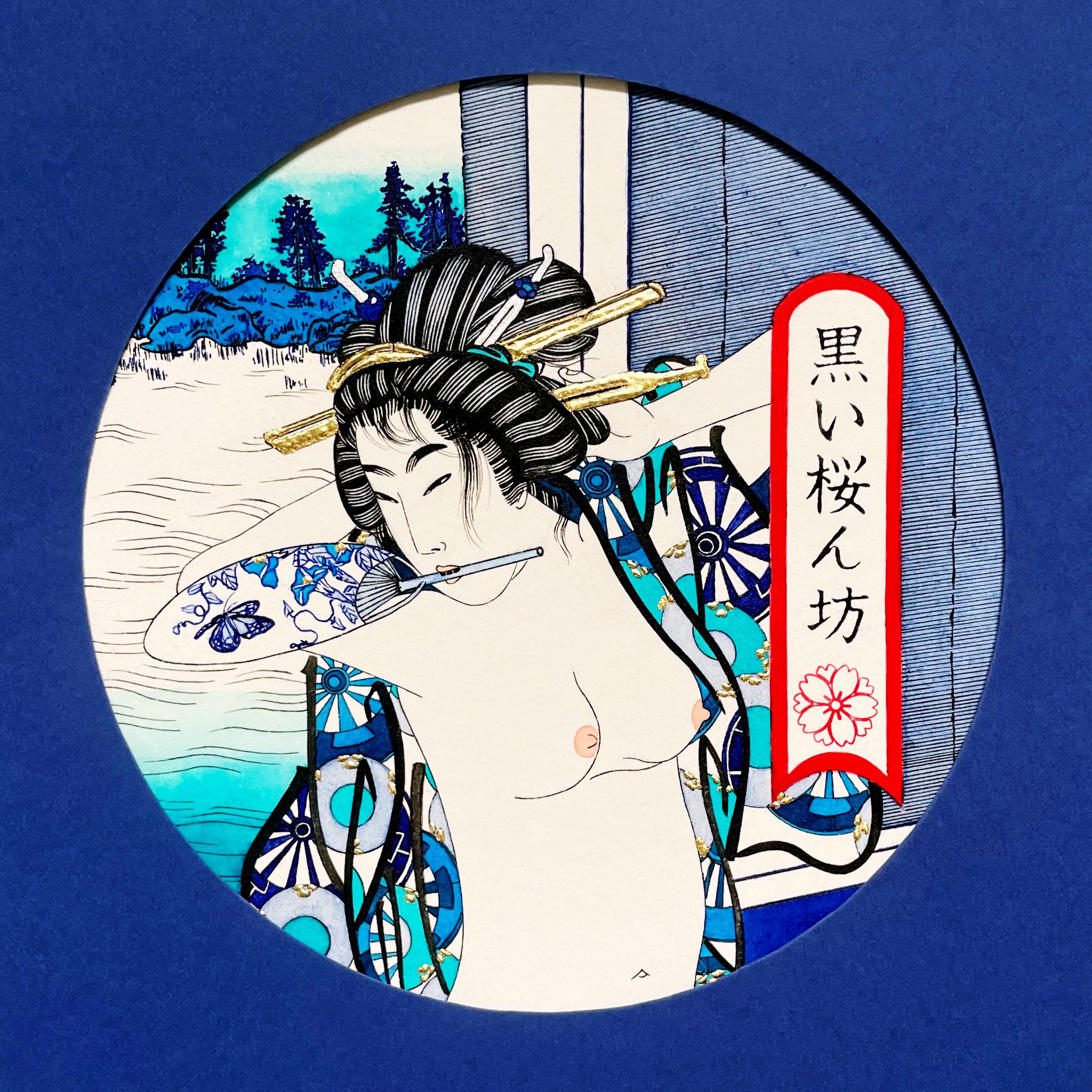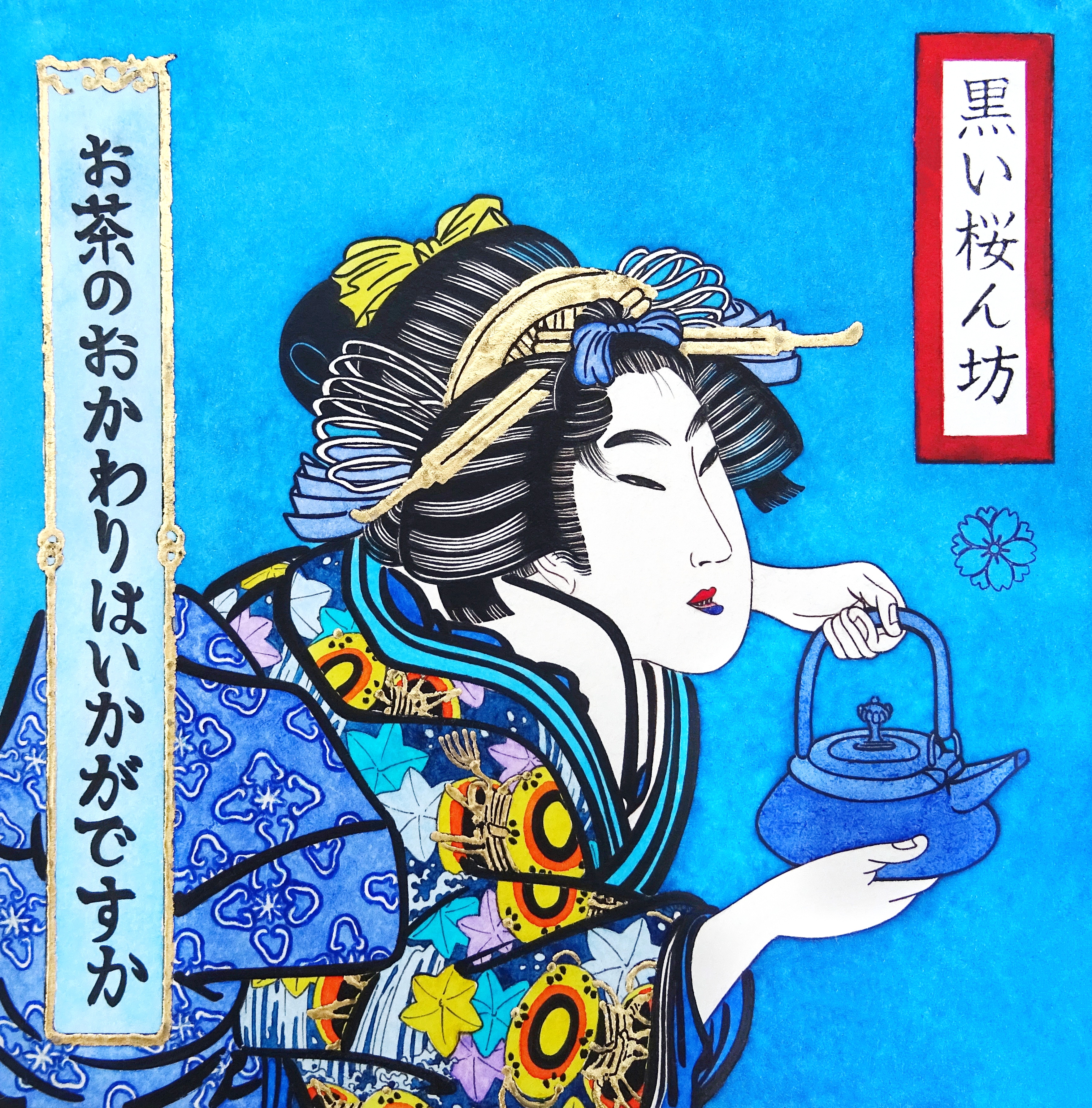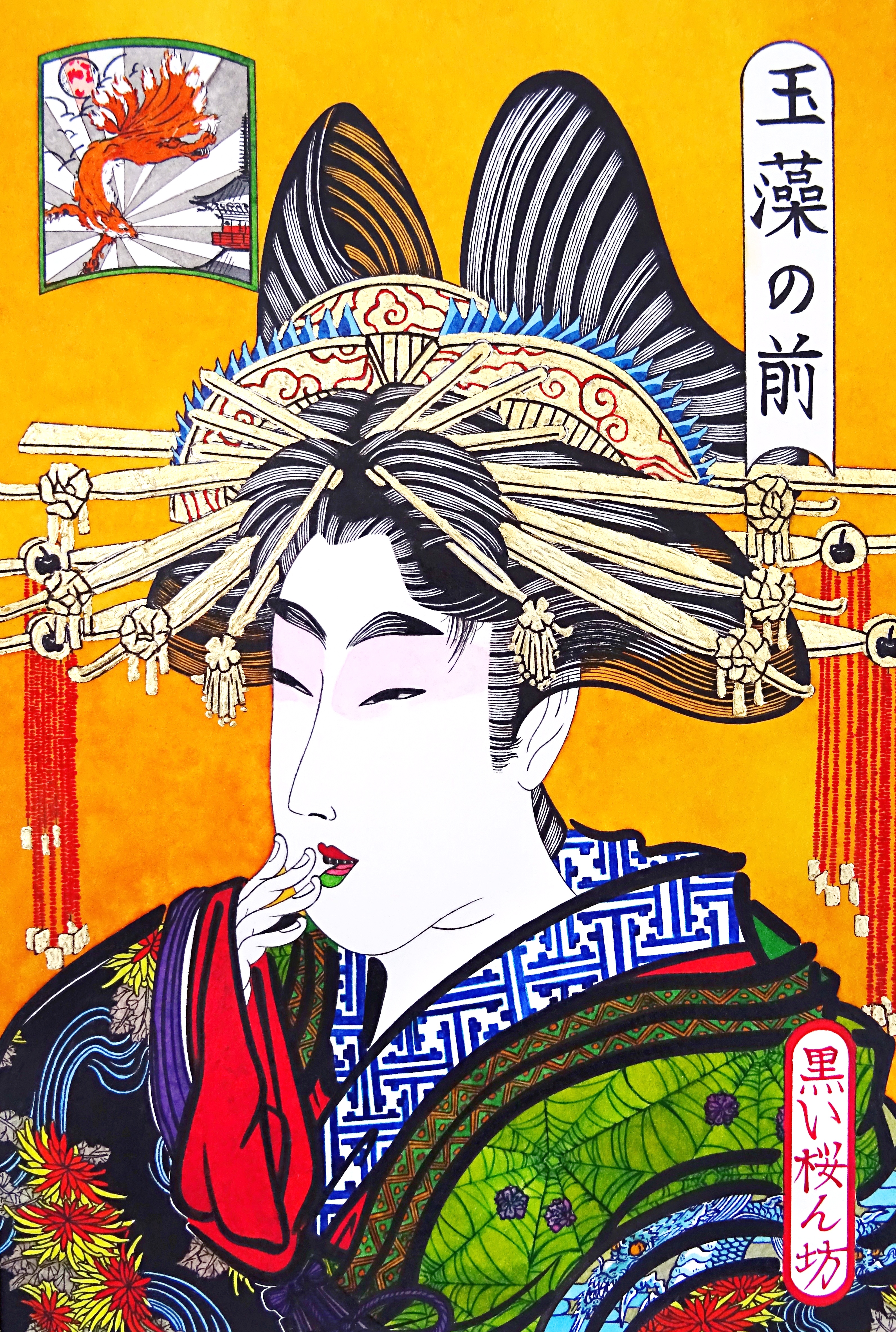 Je cherche à traduire et à célébrer dans mes oeuvres, la beauté éphémère, la résilience et l’art du « monde flottant ». De facto, je m’attache à retrouver la rigueur et la délicatesse de l’époque, en mêlant techniques traditionnelles et médiums modernes. Mais aussi en décortiquant soigneusement les codes de représentations picturales et de leurs symbolismes cachés typiques dans cet art.
